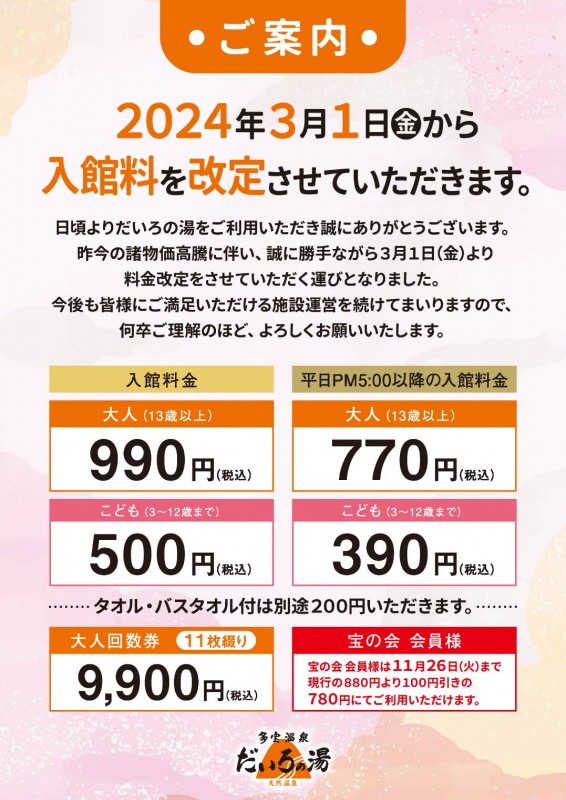 ご利用料金改定のお知らせ2024-01-09